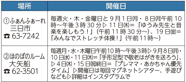 ※このほかにも福祉委員会・自治会主催の遊びの広場を各地域で開催しています。