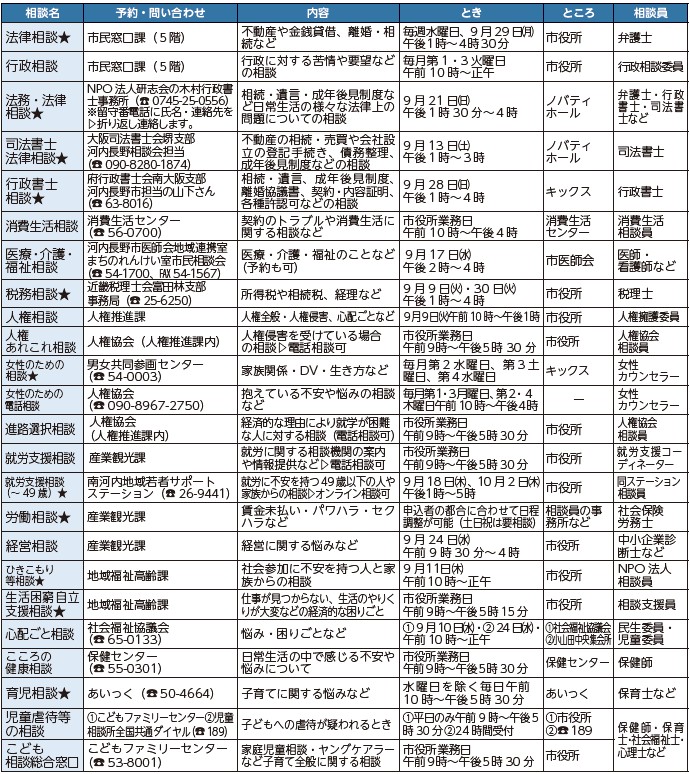 生活相談:9月19日(金)午後1時30分〜5時30分