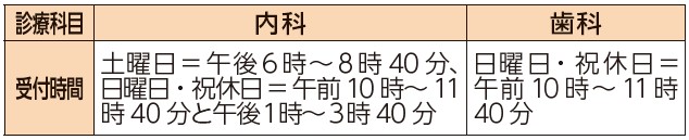 ・休日急病診療所(木戸東町2-1、【電話】55-0300)