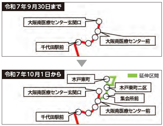 新たに河内長野駅に乗り入れることで、主要4駅で乗降が可能になります。