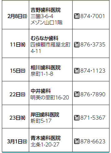 健康 健康情報PICKUP 26/40 前の記事 次の記事 記事を読み上げる 発行日 : 2026年02月01日 自治体名 : 大阪府大東市 広報紙名 : 広報「だいとう」 2026年2月号 ■歯科休日診療 診療時間:午前9時~正午 ※電話をしてから受診してください Tweet シェアする 情報BOX【募集】 情報BOX【健康】