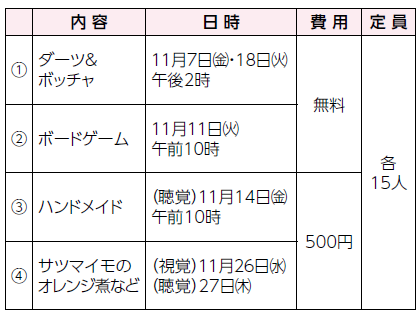 申込・問合:11月5日~19日に障害福祉課