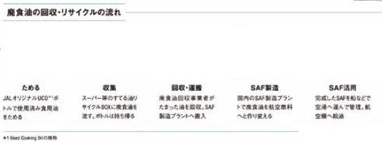 回収した廃食油は、バイオディーゼル燃料(BDF)として活用するほか、将来的に持続可能な航空燃料であるSAFの原料として活用します。