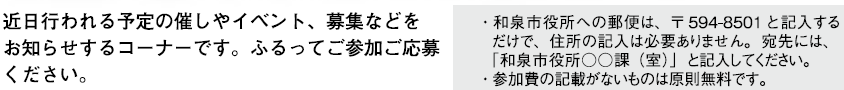 ・申込が必要な催し・イベントは、「募集」に掲載しています。