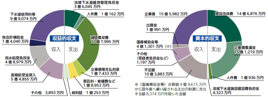 排水処理や施設を維持管理するための経費とその財源。純利益は1億253万円で、令和5年度と比べて1,987万円増加しました。