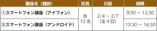 内容:アプリの種類と使い方、パソコンとの接続、2次元コードスキャンなどを学びます。