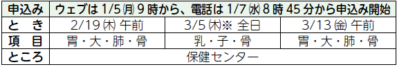 (1)集団検診 無料(予約制・先着順)ウェブサイトまたは電話で予約可能です!