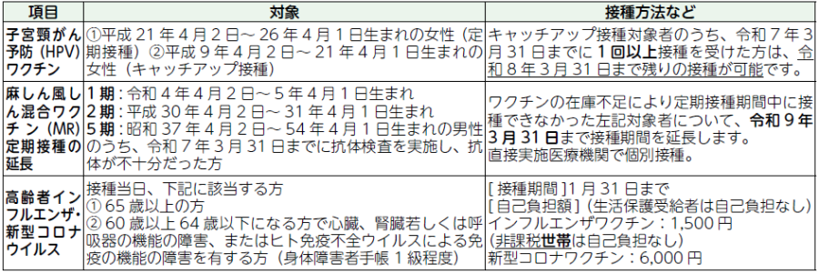 ※対象の方は、予防接種を忘れずに受けましょう。詳しくはウェブサイトをご覧ください