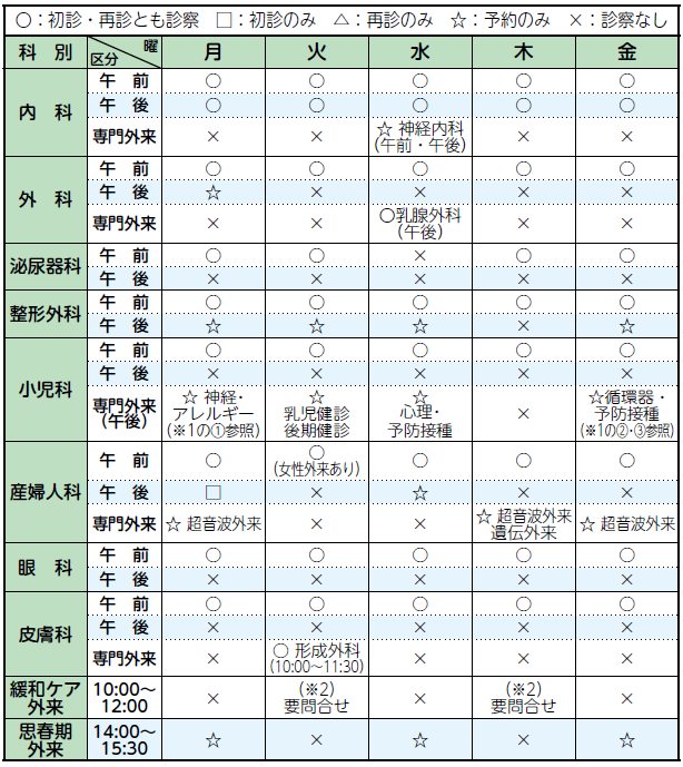 ※1 小児科の専門外来は、次の日程で行っています(予約制)。