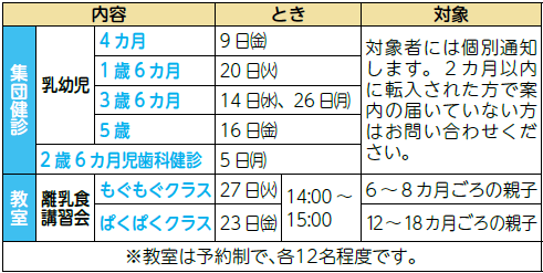 場所・申込み・問合せ:保健センター
