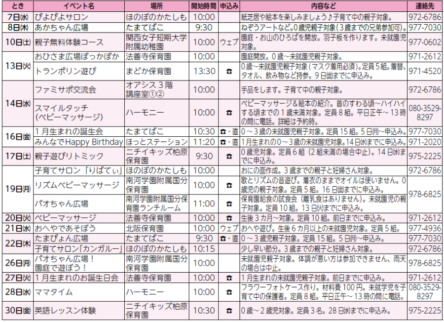 子育てカレンダー以外の行事はこちらから(※本紙二次元コード参照)