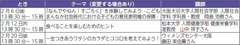 申込み・問合せ:各講座開催日の1週間前までに、男女共同参画センター