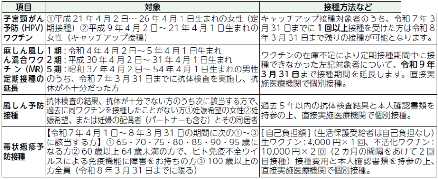 ※対象の方は、予防接種を忘れずに受けましょう。詳しくはウェブサイトをご覧ください。