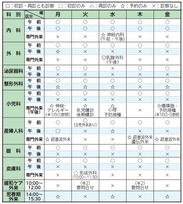 ※3 外科の午後の診察は、緊急手術などにより休診になる場合があります。