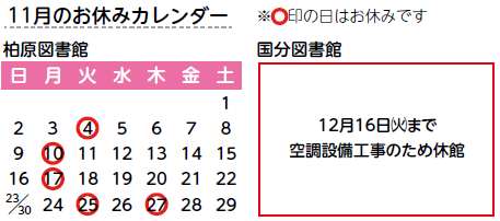※12月16日(火)まで1階学習室は閉鎖。かわりに市民文化センター(柏原図書館と同じ建物)内に臨時学習室を設置する予定です。