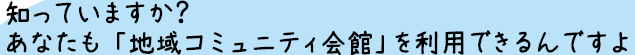 地域住民の連帯意識の高揚と教育・文化などの向上を図ることを目的としたコミュニティ会館は、市内に6カ所あります。大小さまざまな部屋があり、地域の会合やサークル、各種教室、在宅ワークなどの用途に応じて使ってもらえます。外観や室内の写真は、市ウェブサイトからご覧いただけます。ぜひご利用ください。