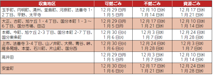 年始の収集日:令和8年1月5日(月)から通常どおり