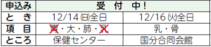 (1)集団検診 無料(予約制・先着順)ウェブサイトまたは電話で予約可能です!
