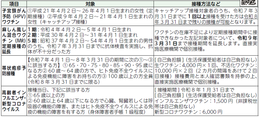 ※対象の方は、予防接種を忘れずに受けましょう。詳しくはウェブサイトをご覧ください