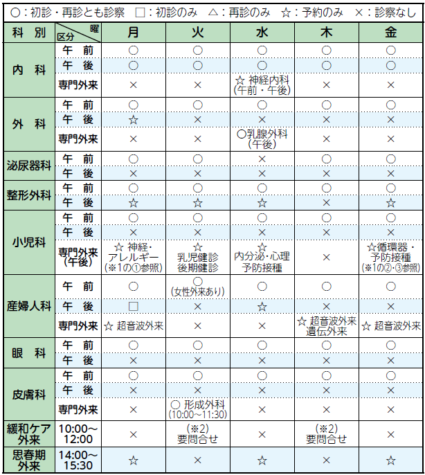 ※3 外科の午後の診察は、緊急手術などにより休診になる場合があります。