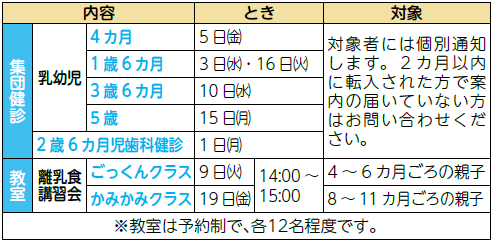 ※その他、妊婦歯科、産婦健康診査、新生児聴覚検査などは保健センターへ。