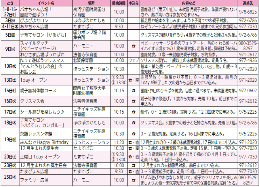 子育てカレンダー以外の行事はこちらから(※本紙二次元コード参照)