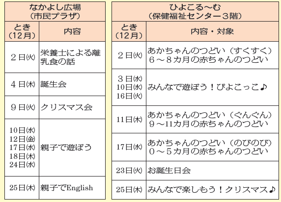 ・なかよし広場…平日午前9時30分〜午後5時に電話