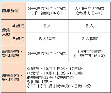 ※各園の希望者が募集人数を超えたときは抽選