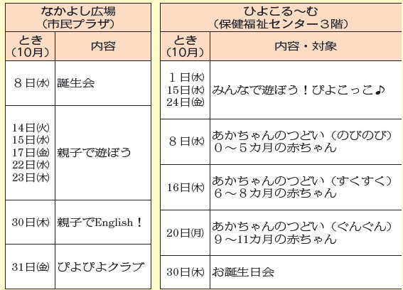 ・なかよし広場…平日午前9時30分〜午後5時に電話