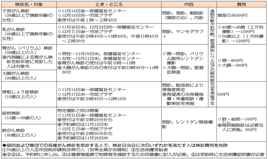 ※胃がん・大腸がん・子宮がん・乳がん・骨粗しょう症はインターネット予約システム「アイテル」から