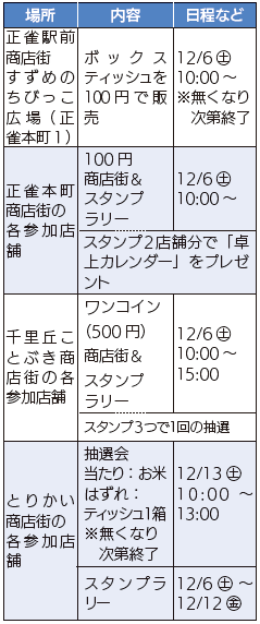 商店街ごとに「100円商店街」「スタンプラリー」「抽選会」を実施します