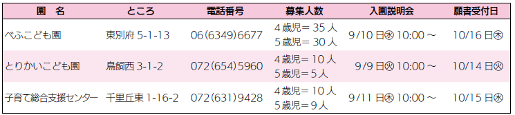・10/1日(水)~17日(金)は、今年度の4歳児の途中入園の受付は行いません