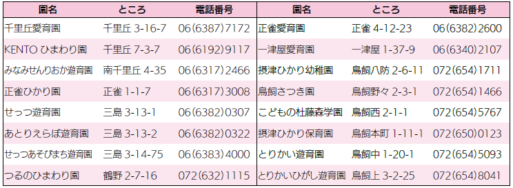 ・現4歳児の入退園状況によって、次年度の5歳児の募集人数が増減することがあります