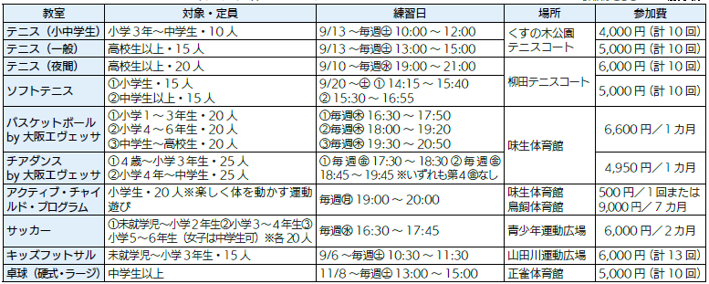 スポーツ教室の詳細はこちら