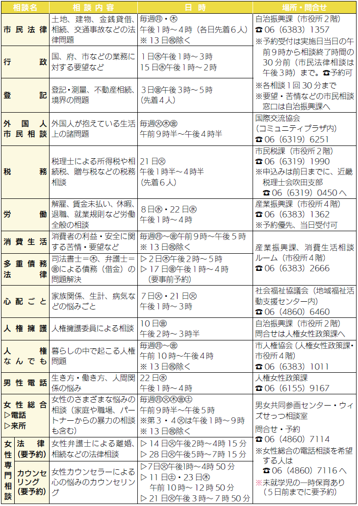 くらし 相談 10/38 前の記事 次の記事 発行日 : 2025年10月01日 自治体名 : 大阪府摂津市 広報紙名 : 広報せっつ 令和7年10月1日号 ◆今月の各種相談 ※いずれも無料 ※施設休館日は行っていません Tweet シェアする 国民健康保険の「資格情報のお知らせ」または「資格確認書」を送付 健康