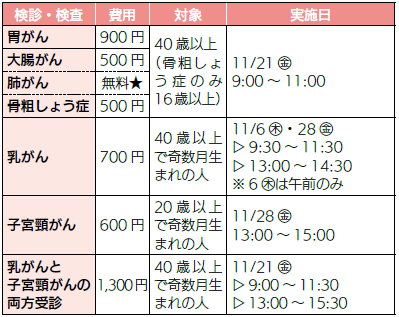 ◆保健センターのセット健診〜健康診査+がん検診〜