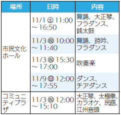 今年も市民の皆さんが日ごろの活動の成果を発表します