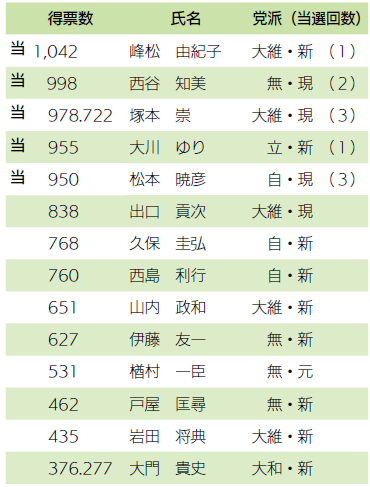 ※無:無所属、参:参政党、公:公明党、国民:国民民主党、共:日本共産党、大維:大阪維新の会、立:立憲民主党、自:自由民主党、大和:大大阪の和