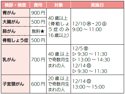 ・セット健診午後プラン(受付13:30〜15:00)…12/1(月)、4(木)