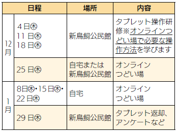 日時:11月21日~12月12日の金曜日 午後1時半~3時半(計4回)