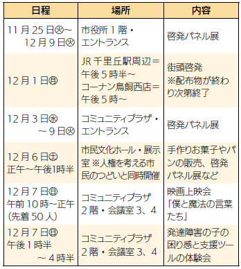 障害者福祉への理解を深めることなどを目的に、下記のとおり啓発活動を行います。