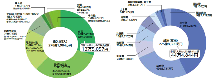 ※市民1人あたりとは、令和7年3月31日現在の人口(62,008人)で割った金額です。