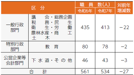 (1)部門別職員数の状況 (令和7年4月1日現在)