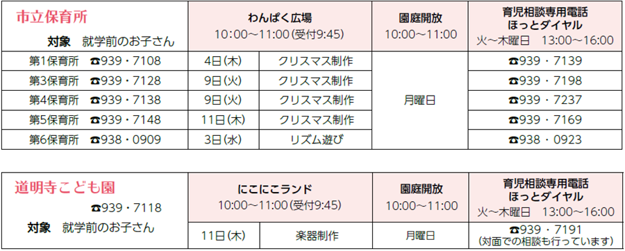 対象や持ち物・申込方法など各イベントや子育て相談の詳細は、ホームページをチェックしてや~!