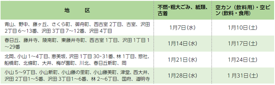 ■不燃・粗大ごみ、紙類、古着、空カン・空ビン