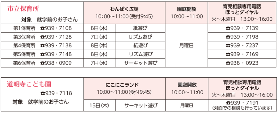 問合せ:道明寺南幼稚園
