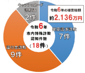 被害件数では、還付金詐欺が全数の半分を占めています。