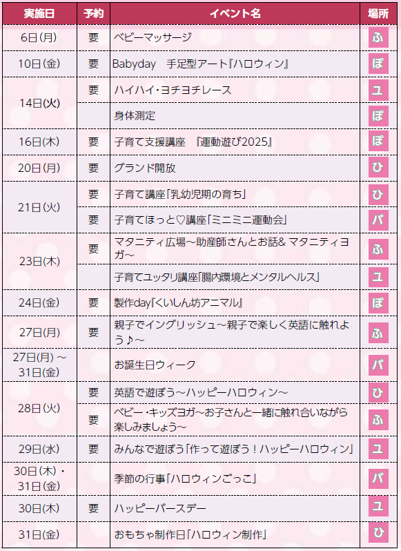 予約開始日・開始時間など詳細は各ひろばホームページをご覧ください。
