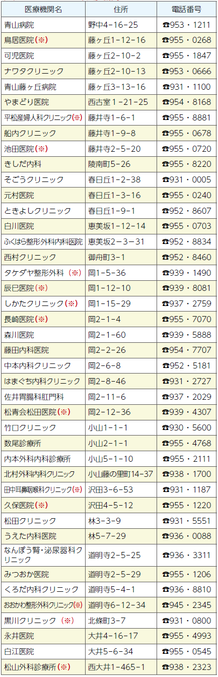 令和7年度 インフルエンザ・コロナ予防接種実施医療機関