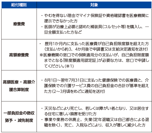 ■国民健康保険のさまざまな給付の紹介